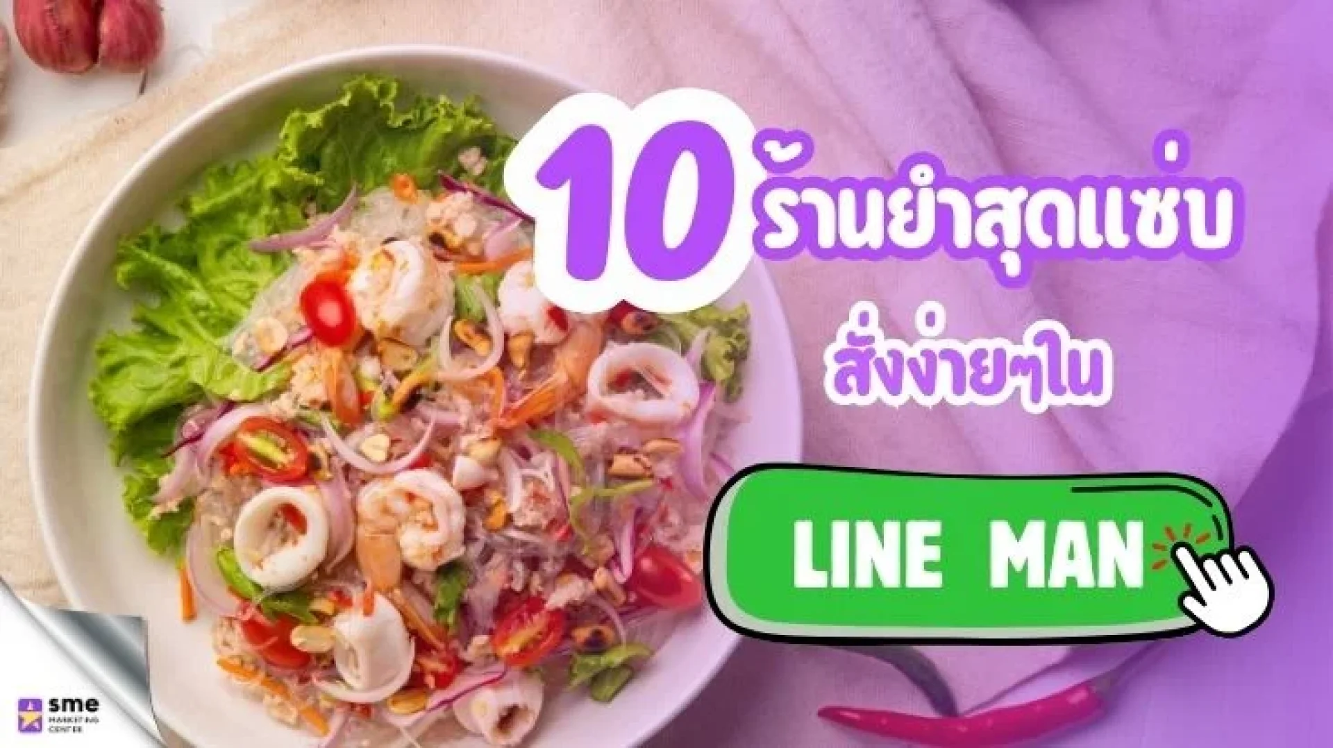 เมื่อพูดถึงอาหารรสจัดจ้านที่ถูกใจคนไทยแทบทุกเพศทุกวัย ยำ คงเป็นหนึ่งในเมนูที่ใครหลายคนคิดถึง และในยุคที่การสั่งอาหารผ่านแอปพลิเคชันกลายเป็นเรื่องง่าย สายยำจึงไม่ต้องออกจากบ้านให้เสียเวลาอีกต่อไป วันนี้ SME Marketing Center ขอพาคุณไปพบกับ 10 ร้านยำชื่อดังในกรุงเทพฯ ที่สามารถสั่งผ่าน LINE MAN ได้สะดวกสุด ๆ ไม่ว่าจะอยู่ที่บ้านหรือออฟฟิศ ก็ฟินได้กับเมนูยำสุดแซ่บถึงเครื่อง สดใหม่ ส่งตรงถึงมือแบบไม่มีสะดุด
