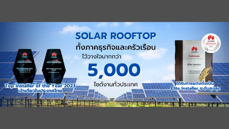 มีผลงานติดตั้งขนาดใหญ่ทั้ง Solar Roof และ Solar Parking ผ่านมาตรฐานการไฟฟ้า (PEA)