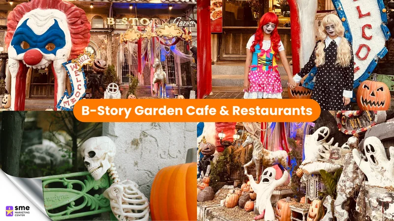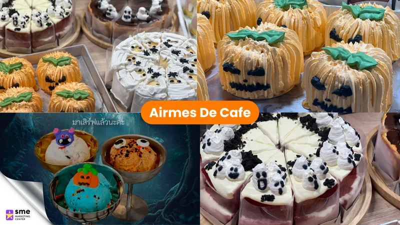 คาเฟ่ที่โดดเด่นด้วยการตกแต่งสไตล์สวนอังกฤษที่เต็มไปด้วยดอกไม้นานาพันธุ์ แต่ในช่วงฮาโลวีน Airmes De Cafe มักจะปรับเปลี่ยนบรรยากาศให้ดูลึกลับและน่าค้นหามากขึ้น ด้วยการเพิ่มพร็อพฮาโลวีนที่เข้ากับสวนสวยได้อย่างลงตัว ทำให้เกิดความคอนทราสต์ที่น่าสนใจและสร้างสรรค์มุมถ่ายรูปที่ไม่ซ้ำใคร