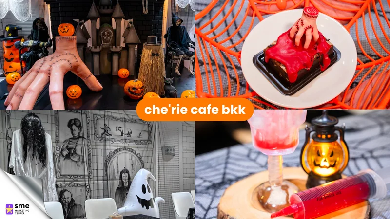 คาเฟ่ที่โดดเด่นด้วยการตกแต่งสไตล์มินิมอลและโทนสีพาสเทล แต่ในเทศกาลฮาโลวีน เฌอริ คาเฟ่ มักจะพลิกโฉมเป็นคาเฟ่สุดคิ้วท์ปนหลอน ด้วยการนำตุ๊กตาน่ารัก ๆ มาแต่งตัวเป็นผี หรือเพิ่มพร็อพฮาโลวีนแบบน่ารัก ๆ เข้าไป ทำให้เป็นคาเฟ่ที่เหมาะสำหรับคนที่ไม่ชอบความหลอนมากเกินไป