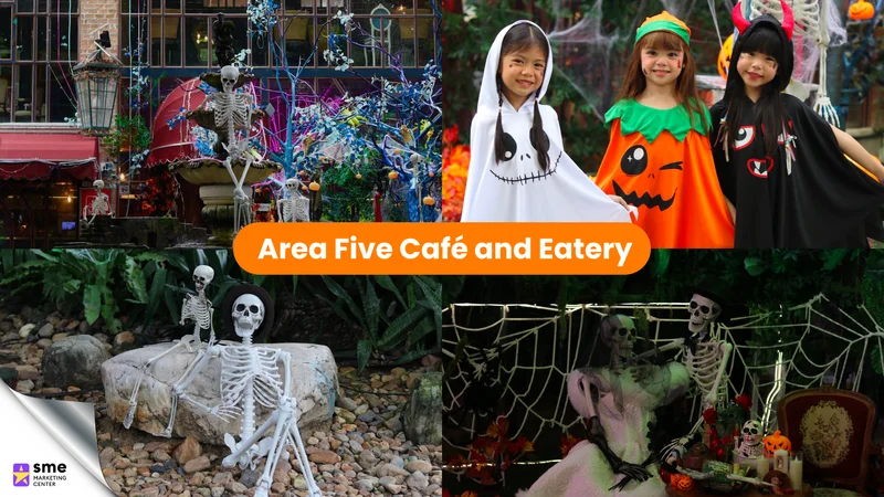คาเฟ่และร้านอาหารที่มาพร้อมบรรยากาศโปร่งสบายด้วยกระจกบานใหญ่ และการตกแต่งสไตล์โมเดิร์น ในช่วงฮาโลวีน Area Five มักจะเนรมิตพื้นที่ให้กลายเป็นสถานที่สุดลึกลับ ด้วยการใช้แสงสีและของตกแต่งที่เน้นความทันสมัยแต่แฝงความหลอนได้อย่างลงตัว ทำให้เป็นอีกหนึ่งคาเฟ่ที่น่าสนใจสำหรับสายคอนเทนต์