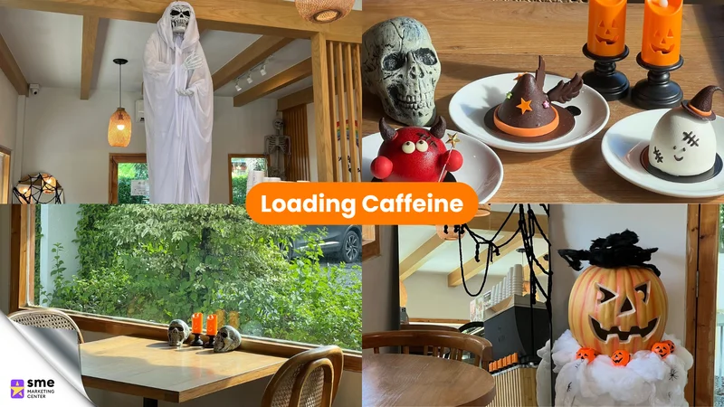 คาเฟ่เล็ก ๆ ที่เน้นกาแฟคุณภาพดีและบรรยากาศสบาย ๆ เหมาะแก่การมานั่งทำงานหรืออ่านหนังสือ แต่สำหรับเทศกาลฮาโลวีน Loading Caffeine มักจะสร้างความประหลาดใจด้วยการตกแต่งที่เรียบง่ายแต่แฝงความหลอนไว้ในรายละเอียดเล็ก ๆ น้อย ๆ พร้อมเสิร์ฟเมนูกาแฟพิเศษที่เข้ากับธีม ให้คุณได้จิบกาแฟไปพร้อมกับความตื่นเต้น