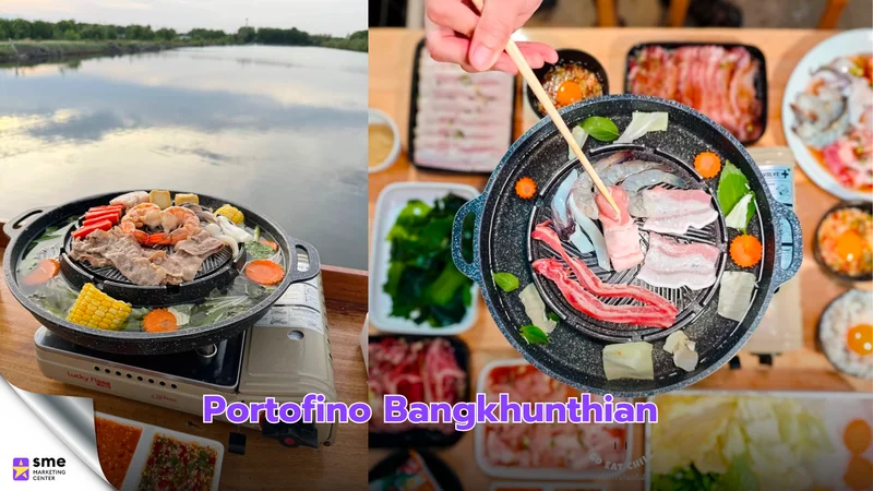 ร้านหมูกะทะ และซีฟู้ดริมทะเลชายทะเลบางขุนเทียน ที่ให้บรรยากาศเหมือนอยู่รีสอร์ทริมทะเลจริงๆ แม้จะไม่ใช่ริมแม่น้ำเจ้าพระยาโดยตรง แต่ก็เป็น ร้านหมูกะทะ ริมน้ำเค็มที่ให้ฟีลอีกแบบ จุดเด่นคืออาหารทะเลสดใหม่ที่ยกขึ้นมาจากทะเลทุกวัน และชุดหมูกะทะซีฟู้ดสุดอลังการ พร้อมวิวพระอาทิตย์ตกดินที่สวยงามเกินบรรยาย เหมาะสำหรับมาทานกับคนรักหรือครอบครัวเพื่อสัมผัสประสบการณ์ที่แตกต่าง