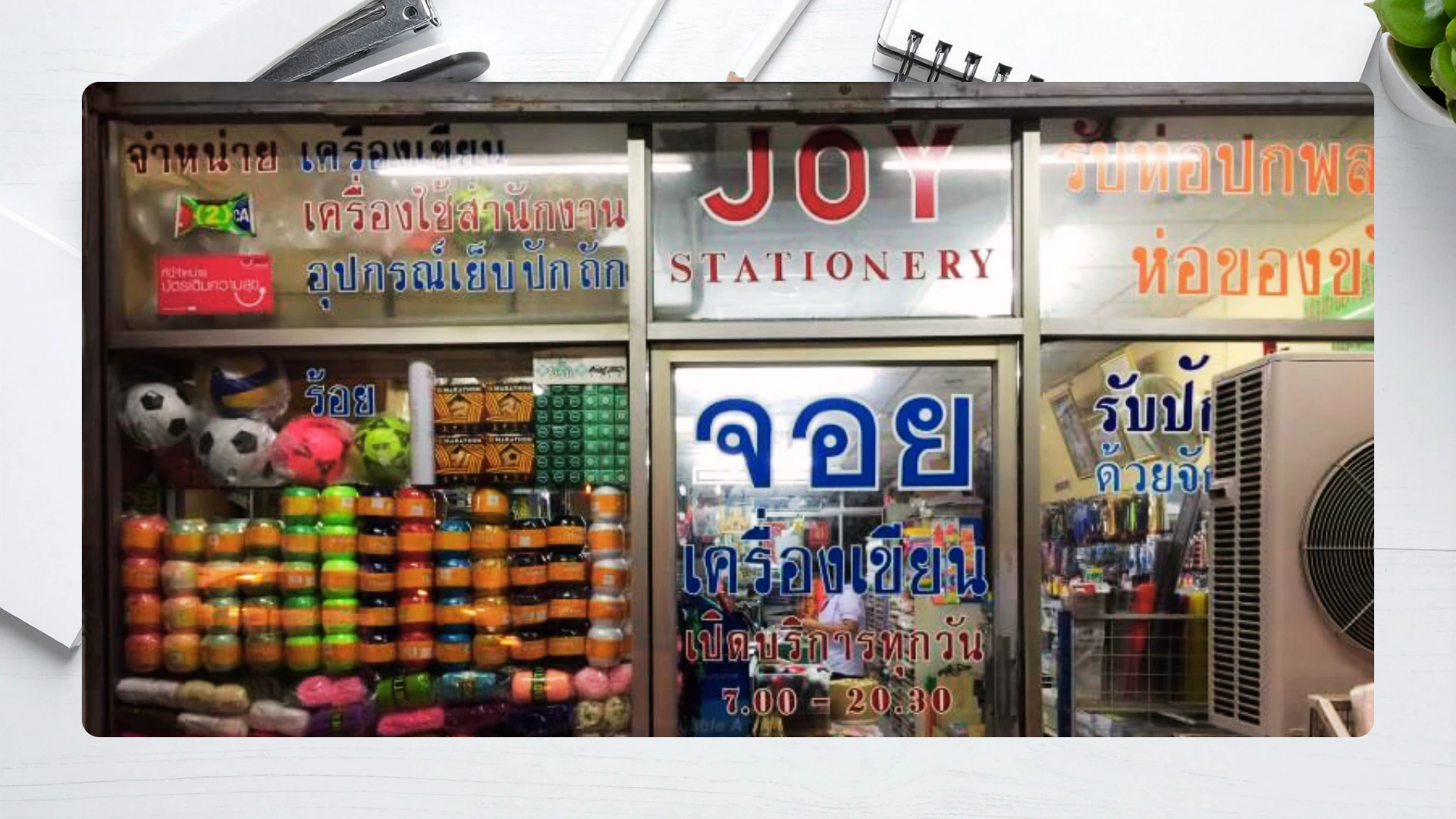 ร้านเครื่องเขียนJoy Stationery ตั้งอยู่ตรงข้ามโรงเรียนรัตนโกสินทร์สมโภชบางขุนเทียน