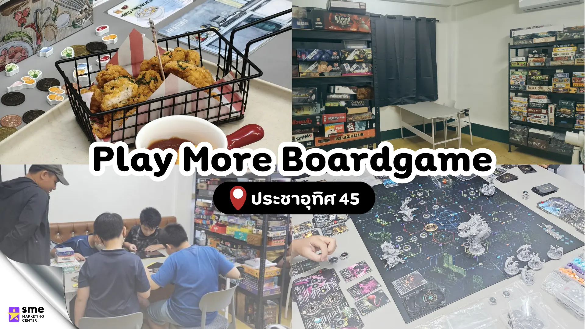 ร้านบอร์ดเกมในย่านประชาอุทิศและฝั่งธนมีความหลากหลายและตอบโจทย์ทุกไลฟ์สไตล์ ตั้งแต่ร้านนั่งชิลราคาสบายกระเป๋าสำหรับวัยเรียน จนถึงคาเฟ่บอร์ดเกมที่ครบเครื่องเรื่องกิจกรรมกลุ่มและการผ่อนคลาย หวังว่ารายการ 10 ร้านบอร์ดเกม ประชาอุทิศ ที่คัดมา จะช่วยให้ผู้อ่านเลือกสถานที่แฮงก์เอาต์ที่เหมาะกับแก๊งเพื่อนได้ง่ายขึ้น และช่วยสนับสนุนธุรกิจ SME ไทยให้เติบโตต่อไป หรืออยากฝากให้เราแนะนำธุรกิจ SME ของท่าน สามารถลงทะเบียนผ่านฟอร์มได้ที่นี่ https://www.smemarketingcenter.com/sme410-form