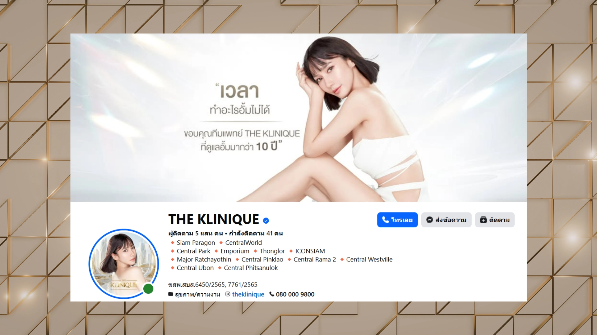 THE KLINIQUE Flagship Thonglor เป็นสาขาหลักระดับพรีเมียมของแบรนด์ ที่รวมเทคโนโลยีด้านความงามและนวัตกรรมเลเซอร์ไว้ครบครัน จุดเด่นคือโปรแกรมยกกระชับ ลดริ้วรอย และปรับรูปหน้าที่เห็นผลชัด โดยใช้เครื่องมือมาตรฐานสากลและทีมแพทย์เฉพาะทาง เหมาะสำหรับลูกค้าที่ต้องการผลลัพธ์ระดับพรีเมียม บริการครบวงจร และประสบการณ์คลินิกหรูในย่านทองหล่อ