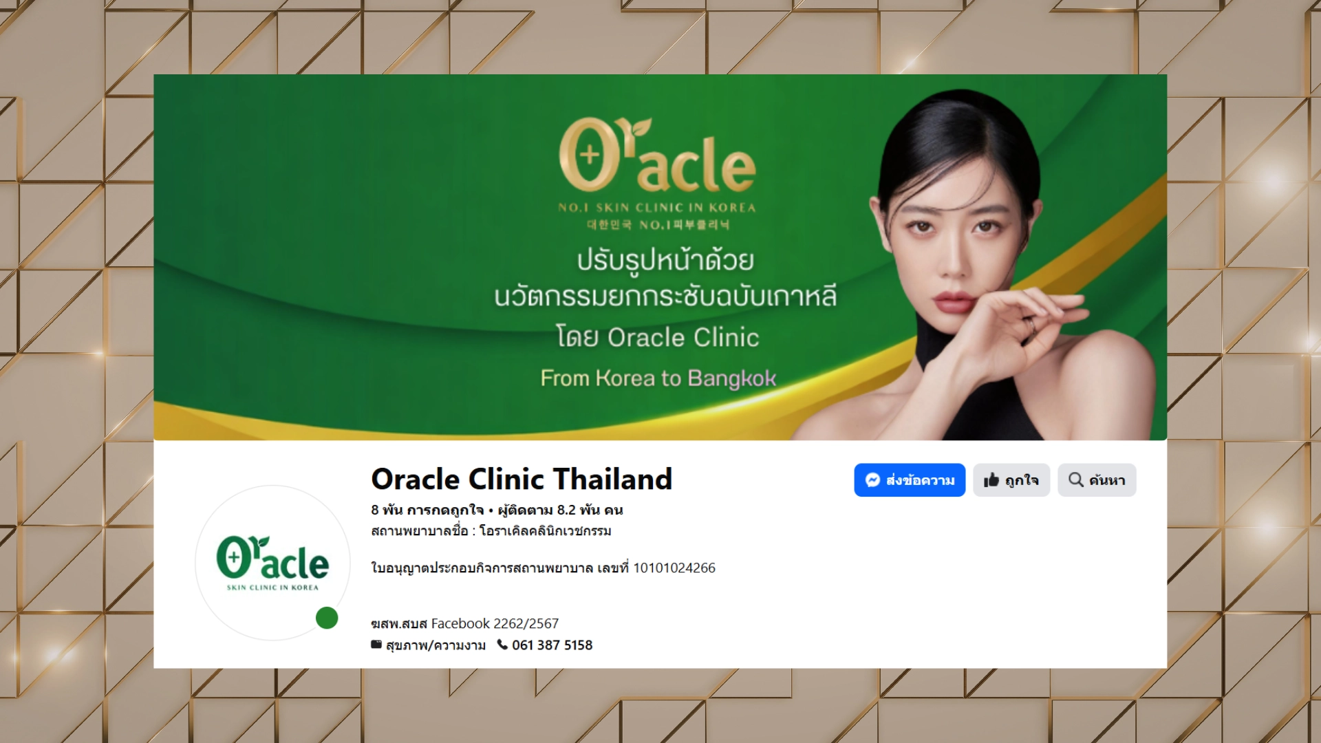 Oracle Clinic เป็นคลินิกความงามจากประเทศเกาหลีที่นำเทคโนโลยีด้านผิวพรรณและการยกกระชับระดับเอเชียเข้ามาให้บริการในไทย จุดเด่นคือการปรับรูปหน้า ลดริ้วรอย และโปรแกรมผิวใสที่เน้นผลลัพธ์แบบสไตล์ K-Beauty พร้อมมาตรฐานความปลอดภัยสูง ตั้งอยู่ใน Marche Thonglor ใกล้ BTS ทองหล่อ เดินทางสะดวก เหมาะกับคนทำงานและสายบิวตี้ที่ต้องการความรวดเร็วและคุณภาพ