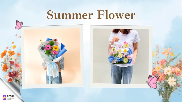 ร้านดอกไม้ที่ให้ความรู้สึกของฤดูร้อนที่สดชื่นตลอดเวลา สไตล์ของ Summer Flower จะเน้นการจัดแบบ "Organic Form" คือปล่อยให้กิ่งก้านและดอกไม้แสดงรูปทรงตามธรรมชาติ ไม่ฝืนทิศทาง ทำให้ช่อดอกไม้ดูมีชีวิตชีวาและดูชิคมากๆ เหมาะสำหรับมอบให้เพื่อนในงานรับปริญญาหรือโอกาสแสดงความยินดีที่ต้องการความโดดเด่น