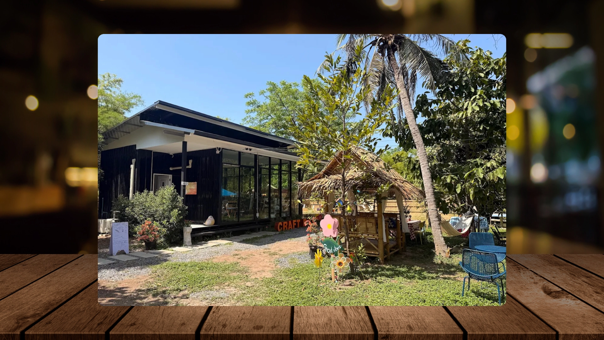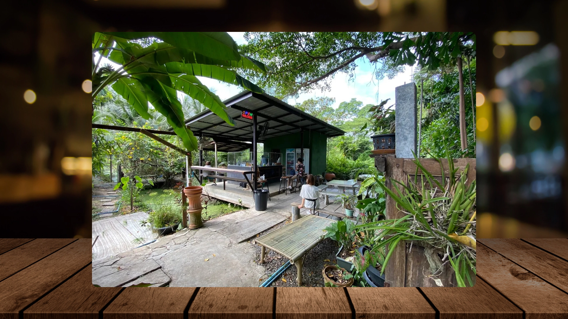 คาเฟ่สไตล์สวนที่มีพื้นที่กว้างและบรรยากาศสบาย ๆ เหมาะสำหรับครอบครัวหรือกลุ่มเพื่อน มีมุมถ่ายรูปหลายจุด และเมนูอาหารไทยพื้นบ้าน