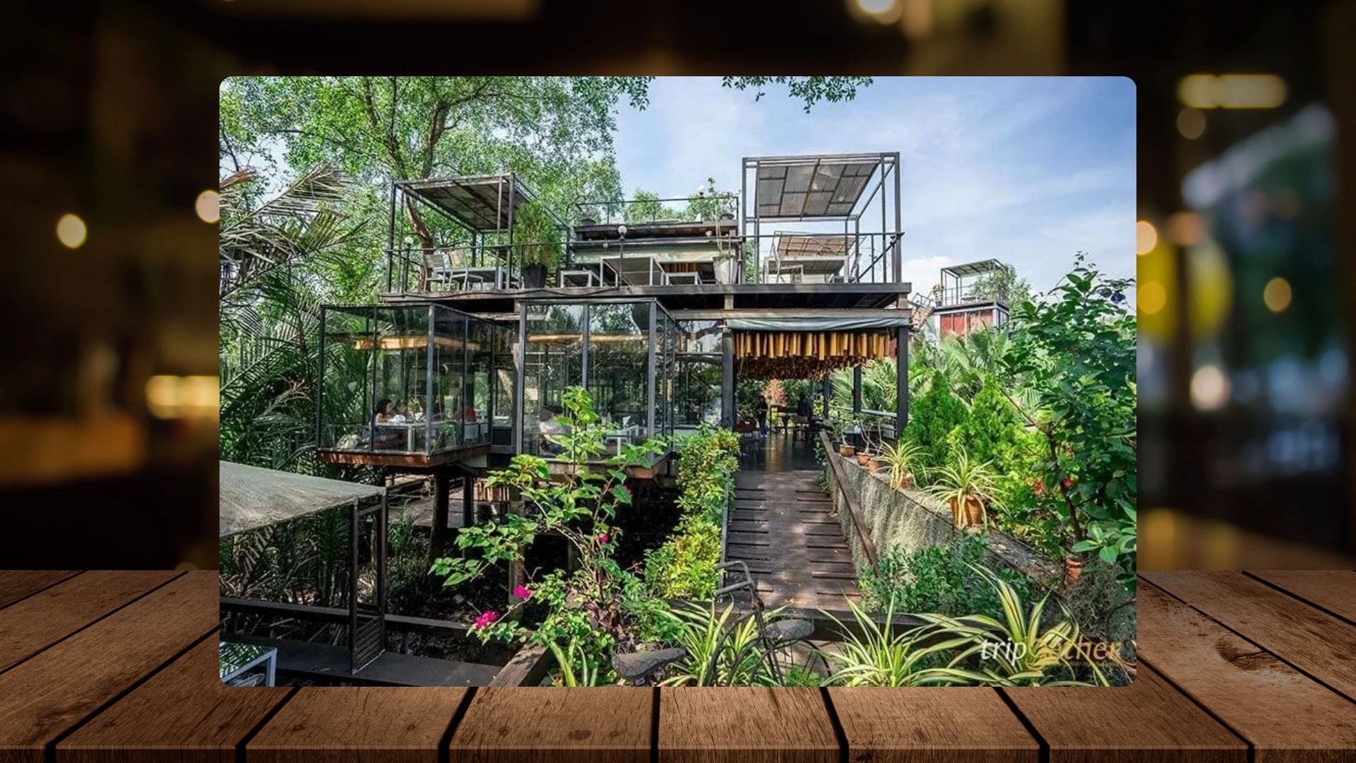 คาเฟ่ชื่อดังในบางกระเจ้าที่โดดเด่นด้านบรรยากาศธรรมชาติ เงียบสงบ และการออกแบบร้านที่กลมกลืนกับต้นไม้ เหมาะสำหรับการพักผ่อนในวันหยุดหรือการถ่ายรูปสวย ๆ เป็นหนึ่งในร้านที่ได้รับความนิยมสูงในกลุ่มนักท่องเที่ยว